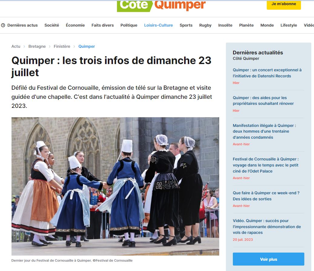 articles de presse 2024 La-Ptit-GazetteTélécharger Quelques articles de presse retraçant les différents événements marquant de l’histoire des Mederien Penhars prolongation de règne de le Reine de Cornouaille 2019 reprise des répétitions après la COVID 19 ARTICLES MULTIMEDIA 2023